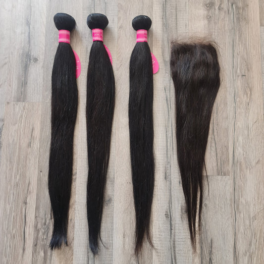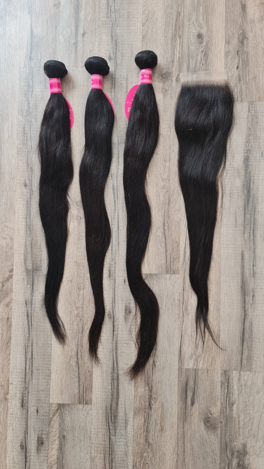 Sets 3 Tressen Haarverlängerung Echthaar + 4x4 Closure