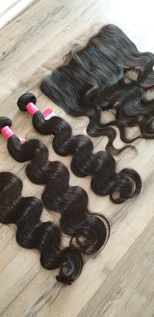 Set 3 Bundles + 13x4 Frontal Human Hair 10"-40" (25cm-100cm) Body Wave