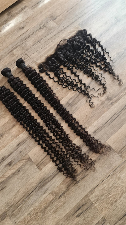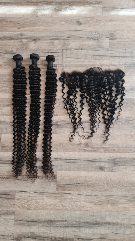 Set 3 Bundles + 13x4 Frontal Human Hair 10"-40" (25cm-100cm) Deep Wave