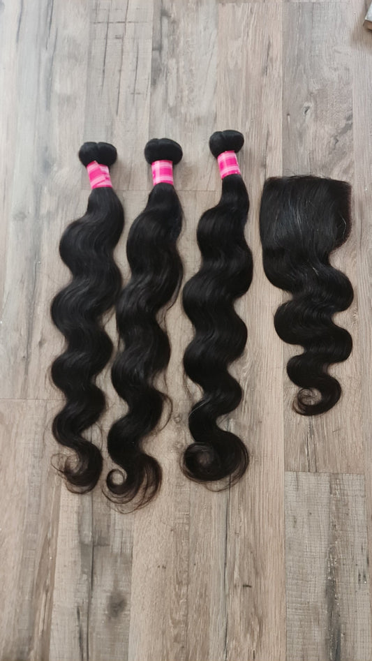 Set 3 Bundles + 4x4 Closure Human Hair 10"-40" (25cm-100cm) Body Wave