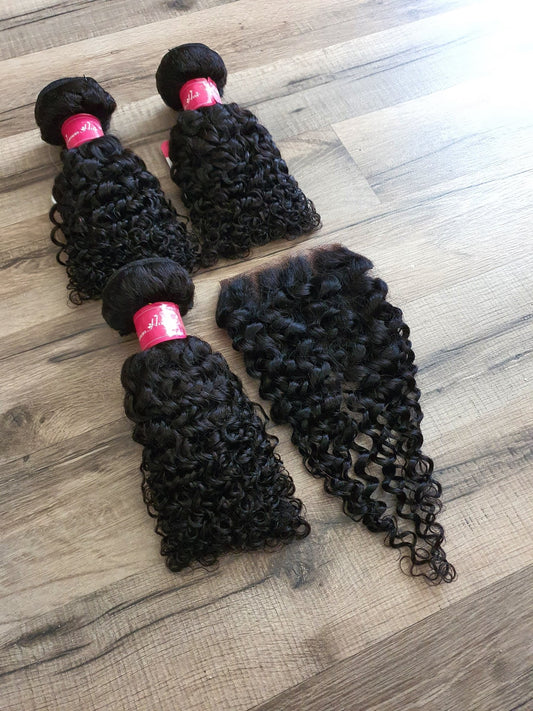 Set 3 Bundles + 4x4 Closure Human Hair 10"-40" (25cm-100cm) Jerry Curly