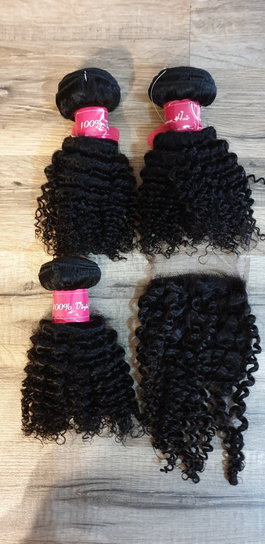Set 3 Bundles + 4x4 Closure Human Hair 10"-40" (25cm-100cm) Kinky Curly