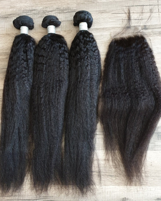 Set 3 Bundles + 4x4 Closure Human Hair 10"-40" (25cm-100cm) Kinky Straight