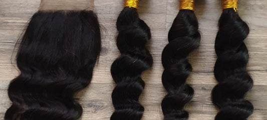 Set 3 Bundles + 4x4 Closure Human Hair 10"-40" (25cm-100cm) Loose Wave