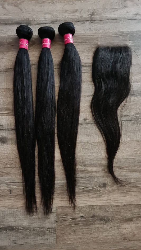 Set 3 Bundles + 4x4 Closure Human Hair 10"-40" (25cm-100cm) Straight