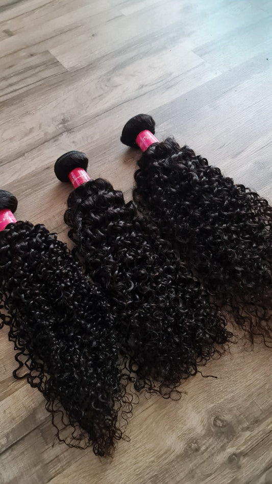 Set 3 bundles hair extensions human hair 10" 25cm Kinky Curly